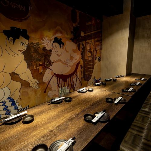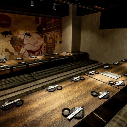 所有座位都在私人包间内。我们提供带桌子和下沉式暖桌的私人包间,可容纳 12 至 18 人,非常适合举办派对。