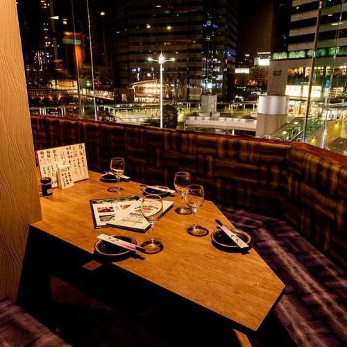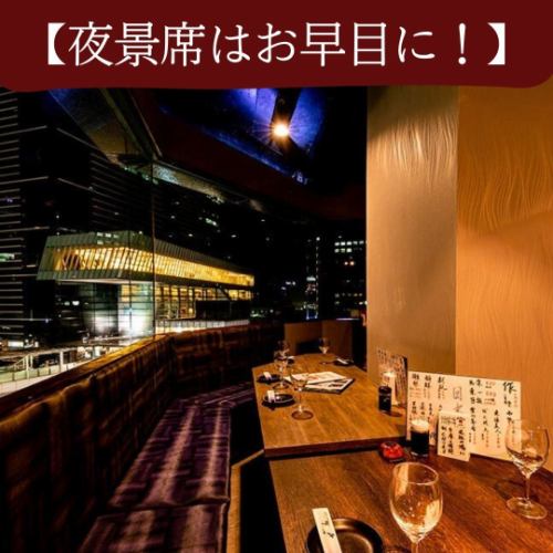 【包间】在可欣赏夜景的包间内享受浪漫夜晚。我们餐厅的所有座位均为包间。我们有适合与朋友聚会的私人餐桌,还有可容纳 12 至 18 人的私人下沉式暖桌包间,非常适合举办宴会。在轻松的氛围中享用美味的食物和饮品,无需担心被他人看到。我们也接受55至100人团体的私人预订。