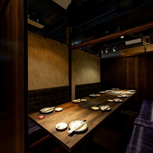 这间可容纳 10 人的私人包间采用柔和的间接照明,氛围极佳,是品川地区各种场合的理想之选。我们有很多房间可供小型团体使用。如果您提前预订,我们可以为您准备一个最多可容纳 10 人的私人房间,请随时咨询我们的工作人员。